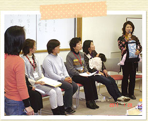 講座修了生は、子育てサポーターとして子育て支援の場で、職場で、日頃の生活の中で、子育て中のママ達をあたたかいまなざしで見守っています。それぞれが立場を超え、立場を活かしながら、広く緩やかなネットワークを作って、ママを支えていければと願っています。